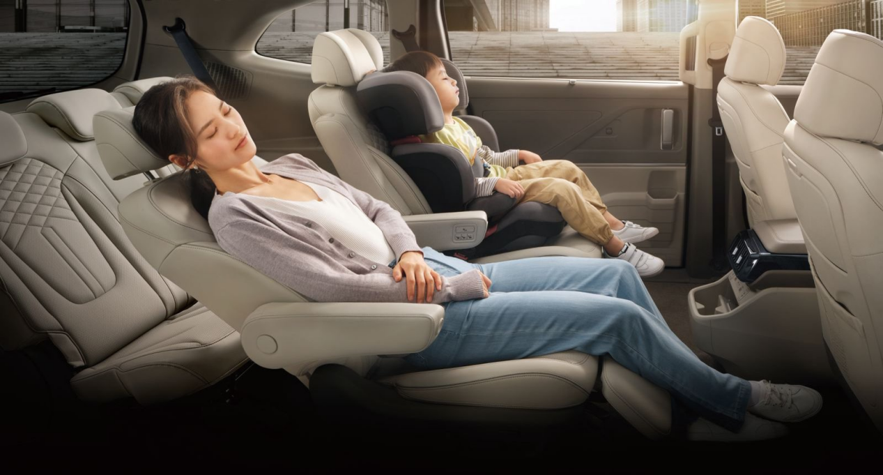 3055mm的超长轴距带来“每一排都能坐得住”的空间感,二排零重力座椅能随时化身“移动沙发”,让父母与孩子并肩而坐,共享旅途时光。三排的无感柔风空调,避免了老人和小孩在长途出行中的闷热不适,让照顾变得轻松自然。低地台设计和双侧智能电动滑门,则让长辈上下车毫无负担,真正实现了全家人都能平等参与的出行体验。